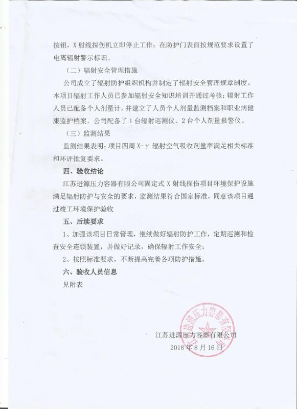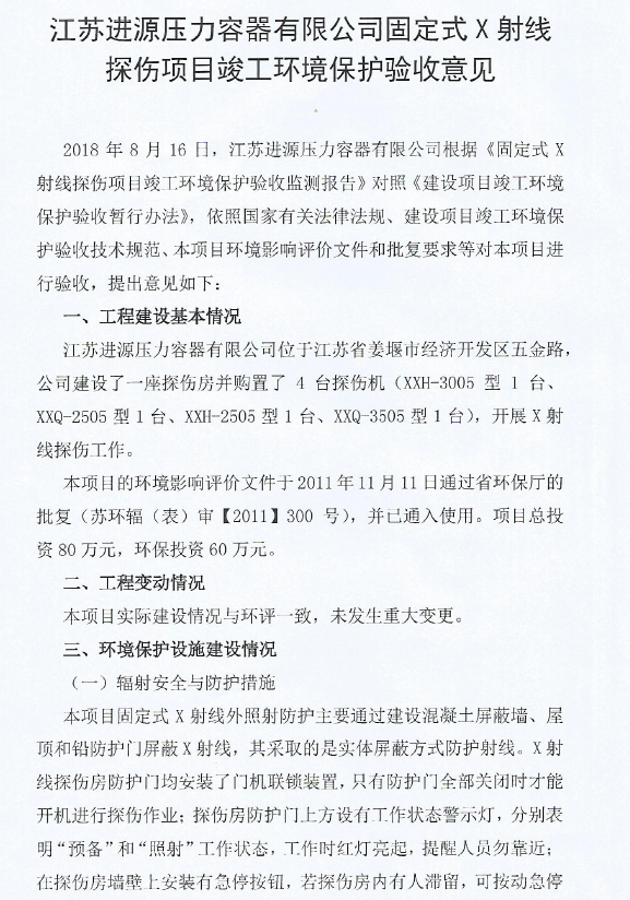 探傷項(xiàng)目環(huán)評(píng)驗(yàn)收公示
